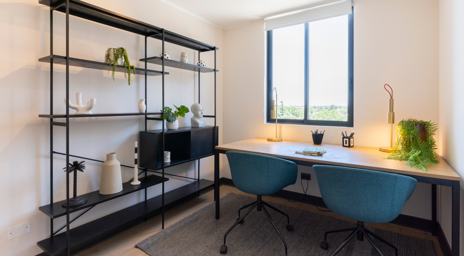 Diseñamos espacios modernos y flexibles que se ajustan a tus necesidades, ya sea para relajarte, trabajar o recibir a quienes más quieres. La funcionalidad se convierte en parte de tu día a día, haciendo de tu departamento un hogar versátil y lleno de posibilidades.